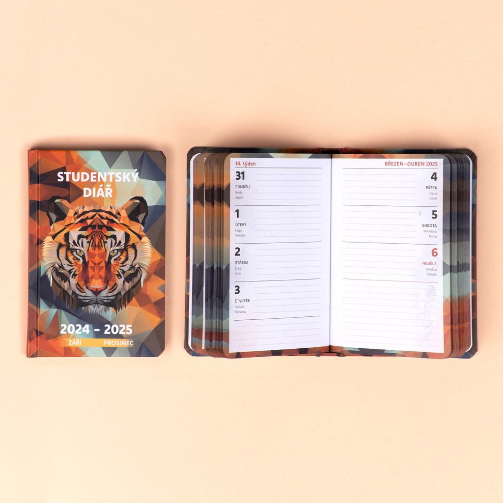 NOTIQUE Studentský diář Tygr (září 2024 – prosinec 2025), 9,8 x 14,5 cm
