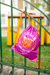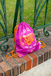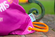 Sáček na obuv z pevného, omyvatelného materiálu. Zdrhování pomocí pevných tkanic, které zároveň umožňují nošení na zádech.