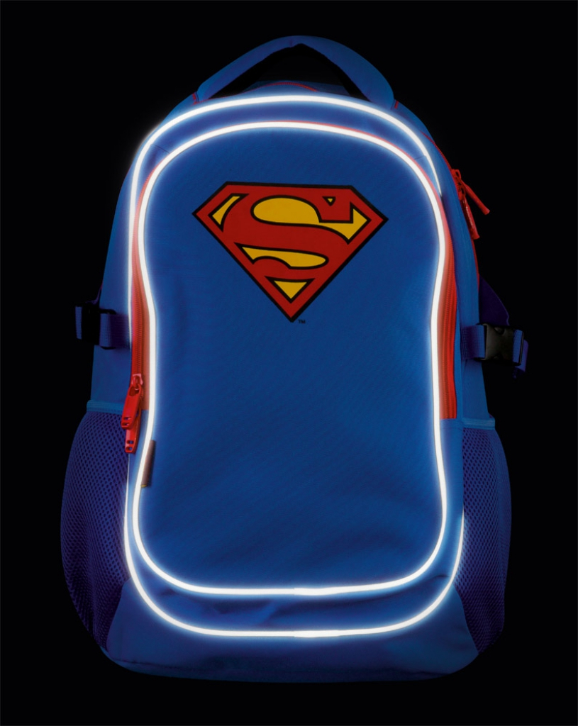 Studentský batoh s hlavním prostorem, obsahujícím polstrovanou kapsu na notebook; přední přihrádka s organizérem; boční síťové kapsy; anatomicky polstrovaná záda; anatomické, výškově nastavitelné ramenní popruhy s nastavitelným prsním popruhem; boční kompresní popruhy; kapsa obsahující pončo do deště; reflexní prvky.