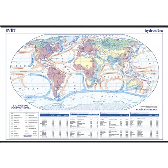 Svět - hydrosféra - školní nástěnná mapa 1:28 mil./136x96 cm
