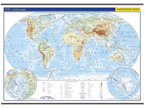 - Svět v měřítku 1 : 26 000 000 ve fyzicko-geografickém provedení