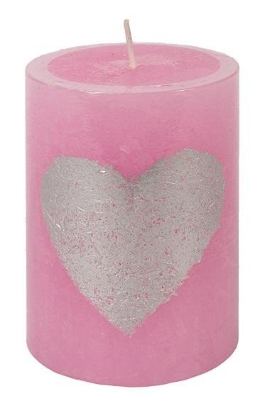 Svíčka růžová se srdcem válec 7 x 10 cm, 35 hodin