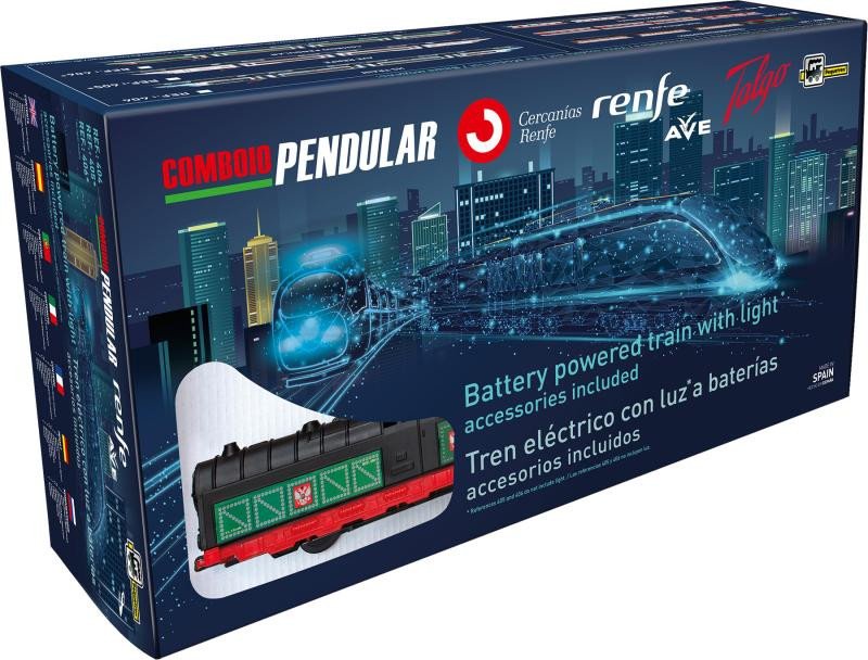 Kovový osobní vlak na baterie se skládá z lokomotivy se světlem a tří vagonů a jezdí po trati dlouhé 3,9 m. Součástí sady je i nádraží, návěstidlo a nakolejovač – pomůcka pro snazší nasazení vlaku na trať ***** Obsah balení: * 1 lokomotiva se světlem, * 3 vagóny, * 3 rovné koleje, * 12 obloukových kolejí, * 1 nádraží, * 1 návěstidlo, * 1 nakolejovač ***** Použijte 2 baterie 1,5 V (typ AA – LR6-M), BATERIE NEJSOU SOUČÁSTÍ BALENÍ