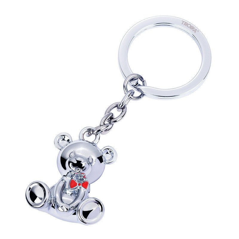 Klíčenka ve tvaru roztomilého medvídka, s kontrastní červenou mašličkou.