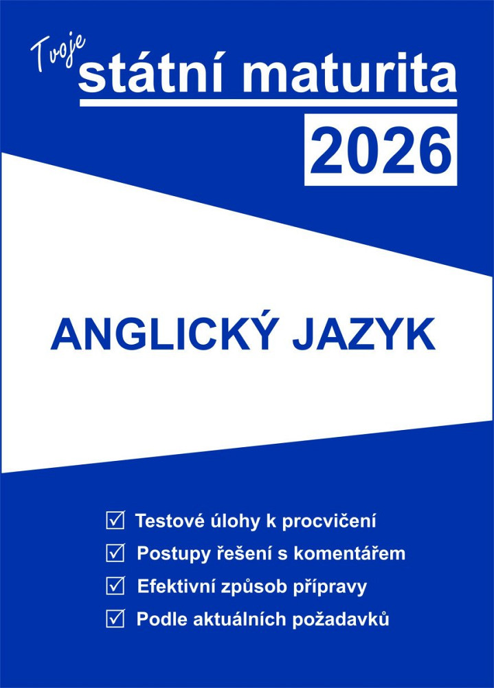 Publikace Tvoje státní maturita 2026: anglický jazyk představuje efektivní způsob přípravy na státní maturitu 2026 z anglického jazyka. Je cíleně určena k přípravě na státní maturitu 2026 z předmětu anglický jazyk v souladu s aktuální koncepcí a požadavky na státní maturitu pro rok 2026.