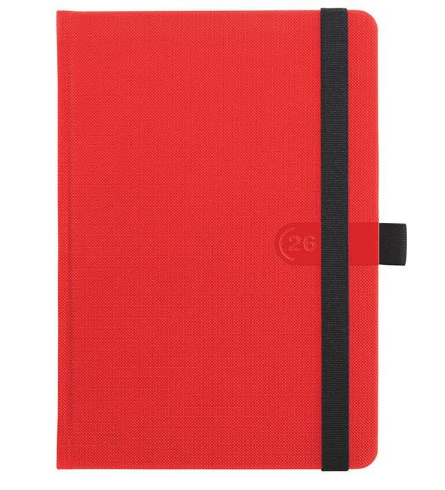 Praktický týdenní diář ve výrazném červeném provedení s kontrastní černou gumičkou a poutkem na pero. Týdenní kalendárium přehledně rozvržené na dvoustraně nabízí dostatek místa pro poznámky, úkoly i plánování schůzek.