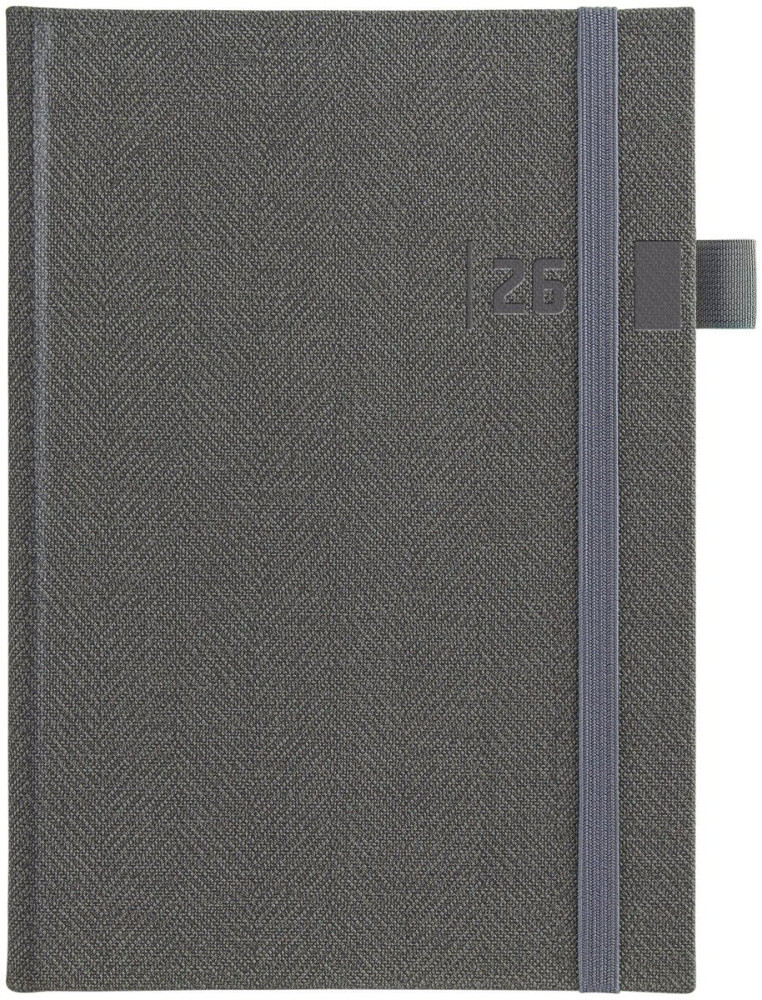 Praktický týdenní diář v elegantním šedém provedení s ladící šedou gumičkou a poutkem na pero. Týdenní kalendárium přehledně rozvržené na dvoustraně nabízí dostatek místa pro poznámky, úkoly i plánování schůzek.