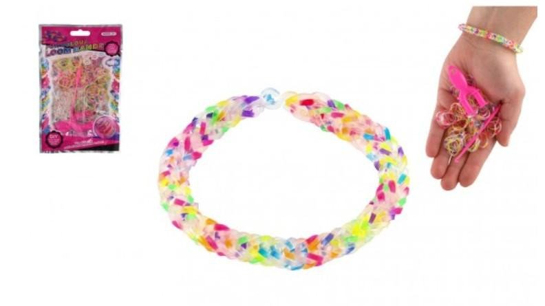 Udělej si svůj náramek - gumičky duhové 200 ks + náčiní