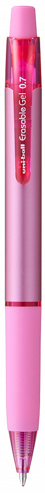 Gumovací pero stiskací s termo citlivým mazatelným inkoustem. Pouhým otřením inkoustové linky víčkem pera se vygeneruje dostatek tepla, aby vymazalo linku. Text zneviditelníte zahřátím, které vznikne třením plastové koncovky na papíře. Stejným perem pak můžete přepsat vymazaný text. Vymazané linky se znovu objeví, pokud jsou vystaveny velmi nízkým teplotám (-18 °C). Gumovací plocha je na horní straně pera ve stiskací části. Originální řešení - při otočení špičkou dolů je stiskací mechanismus aktivní. Pro gumování otočíme pero koncem dolů a koncovka se zafixuje pro pohodlné vymazání textu. Jednoduše řešený design. Pogumovaná úchopová část pro příjemné držení pera. Metalický lesklý povrch. Skvělý pro zápisky do diářů a plánovačů. Gumovací pera se nedoporučují pro podpisy a právní dokumenty, kde má zůstat písmo trvale. Rovněž se nedoporučuje vystavovat poznámky a dokumenty psané tímto perem vysokým teplotám. Velikost kuličky 0,7 mm, šířka stopy 0,5 mm. K dispozici náhradní náplň. Vyrobeno v Japonsku.