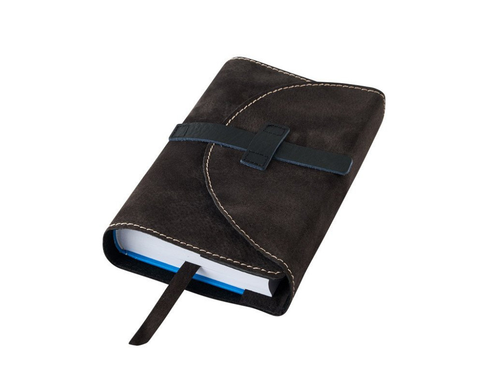 Kožený obal na knihu české ruční výroby. Obal na knihu je ušitý z pečlivě vybraných vepřových nebo hovězích kůží z českých a zahraničních koželužen. Součástí obalu je všitá kožená záložka. Obal má na levé straně všitou kapsu, na pravé straně obalu je proužek, díky kterému se kniha provleče a umožní posouvat obal podle tloušťky hřbetu knihy. Obal na knihu je tak vhodný na většinu knih ve Vaší knihovně. Obal na knihu zasíláme s letáčkem v celafánovém sáčku.