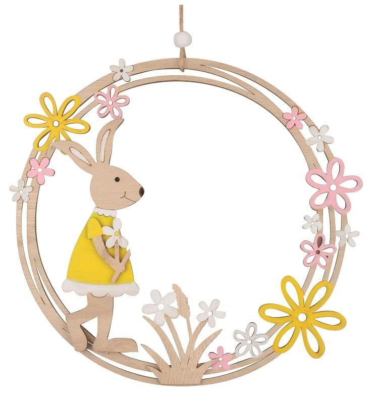 Věnec dřevěný se zajíčkem na zavěšení 23 cm