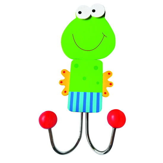 Veselá dekorace do každého dětského pokoje. Dřevěný věšák s motivem zvířátek - žába.
