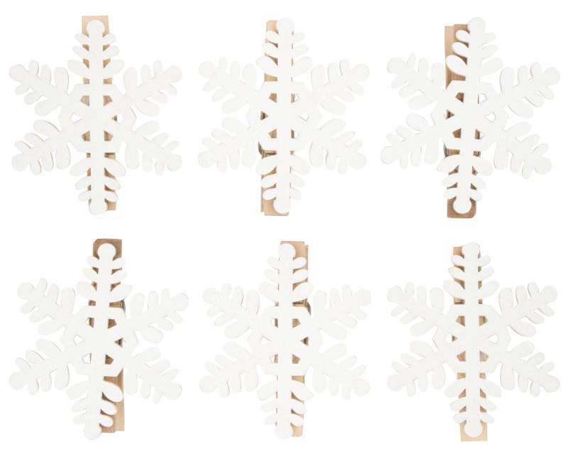 Vločka dřevěná na kolíčku 6 cm (6 ks)