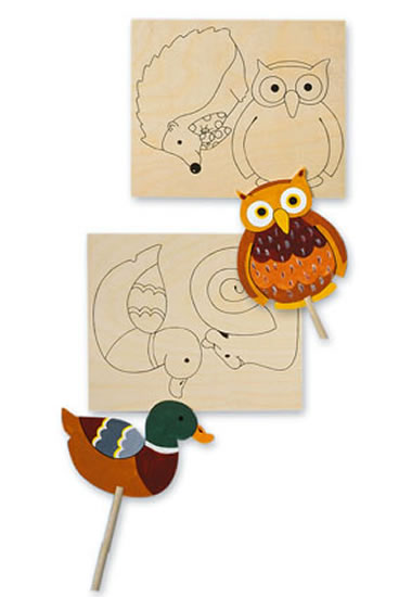 Vyřezávací zvířátka pro zručné mistry, dřevěná, lze vybarvovat. 2 desky s nakreslenou předlohou 25x25 cm