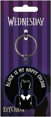 Gumová klíčenka s licenčním motivem ze seriálu Wednesdey a kovovým očkem na zavěšení.