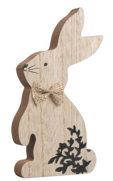 Zajíc dřevěný s černým dekorem na postavení 7,5 x 14,5 cm