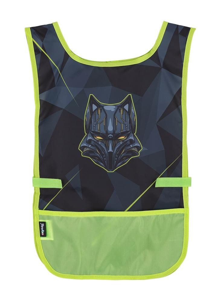 Zástěra pončo do výtvarné výchovy či na jiné tvořící aktivity. Oblékání přes hlavu a po stranách zapínání na suchý zip. Vpředu jedna prostorná kapsa. Materiál 100% polyester.