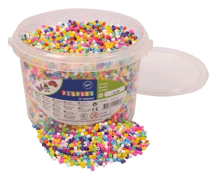 Velký kbelíček plný 20 000 barevných korálků ve velikonočních odstínech, ideální pro tvoření originálních motivů. Pomocí podložek a šablon si děti i dospělí vytvoří vlastní obrázky, které pak snadno zažehlí přes pečicí papír. Korálky lze také navlékat na provázek a využít jako klasické korálky. Skvělá aktivita pro podporu kreativity a jemné motoriky.