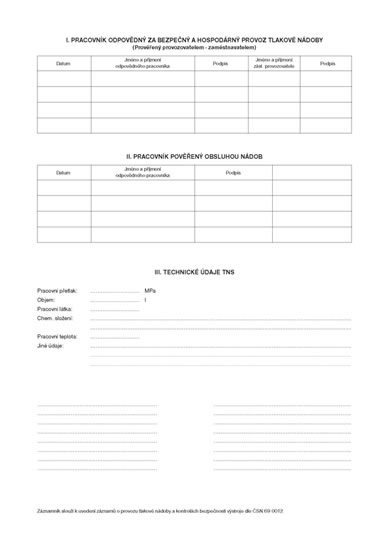 Záznamník o provozu tlakové nádoby, A4, 16 listů