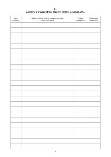 Záznamník provozu tvářecího stroje, A4, 12 listů
