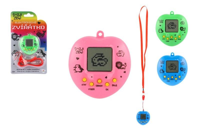 Zvířátko elektronické přívěsek se šňůrkou plast - 3 barvy na kartě