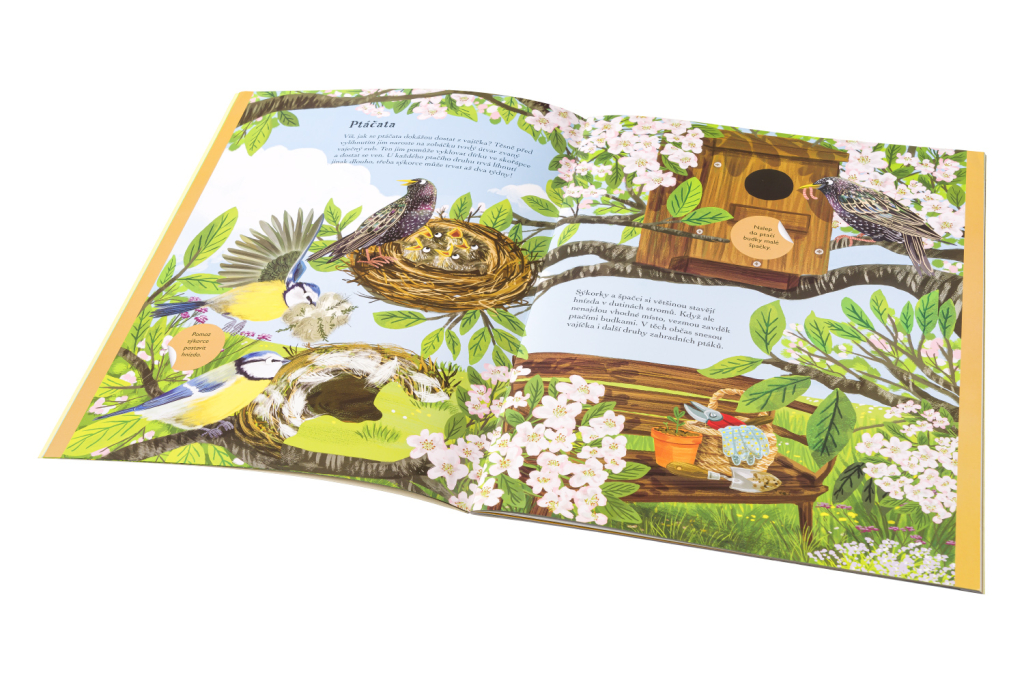 Vydejte se na dobrodružnou výpravu do ptačí říše s knížkou plnou samolepek! Navštivte opeřence v jejich hnízdech, vydejte se s nimi do oblak… Hluboko v lese či poblíž lidských obydlí, vysoko v korunách stromů, na březích nebo hladinách vod, tam všude objevíte ptáčky zpěváčky. V téhle knížce se seznámíte s malými zahradními pěvci, ale i dravými predátory, dozvíte se o nich řadu zajímavostí, a navíc si užijete spoustu zábavy při dotváření 11 překrásných přírodních scenerií za pomoci roztomilých samolepek.