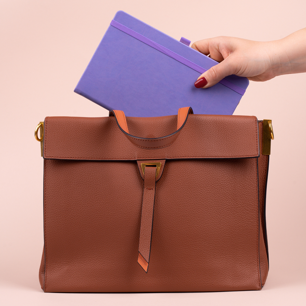 Praktický a lehký linkovaný notes v trendy barvě lila má povrch s jemnou strukturou, na který si můžete nechat vyrazit logo společnosti. Notes má pevnou knižní vazbu a zakulacené rohy, poutko na tužku, elastickou gumičku a textilní záložku. Linky mají 6 mm a jsou na kvalitním žlutém papíře.