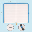 Praktický a lehký linkovaný notes v klasické modré barvě má povrch s hrubší strukturou, na který si můžete nechat vyrazit logo společnosti. Notes má pevnou knižní vazbu a zakulacené rohy, poutko na tužku, elastickou gumičku a textilní záložku. Linky mají 6 mm a jsou na kvalitním žlutém papíře.