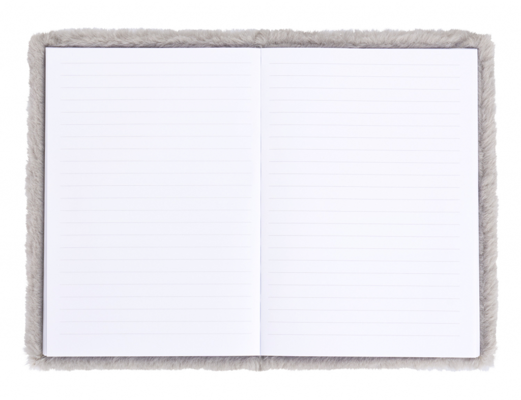 Originální notes s plyšovým povrchem v šedivé barvě s obrázkem psa.