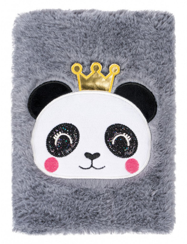 Originální notes s plyšovým povrchem v šedivé barvě s obrázkem pandy.