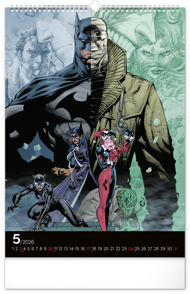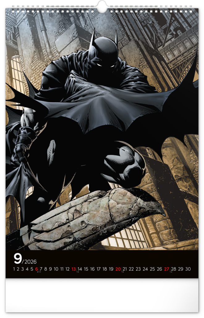Nástěnný kalendář s obrázky z komiksů Batman potěší každého fanouška Temného rytíře. Nabízí ikonické ilustrace hrdiny z Gothamu na každý měsíc roku. Kalendář je ideální jako dekorace do pokoje nebo kanceláře.