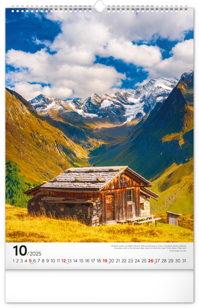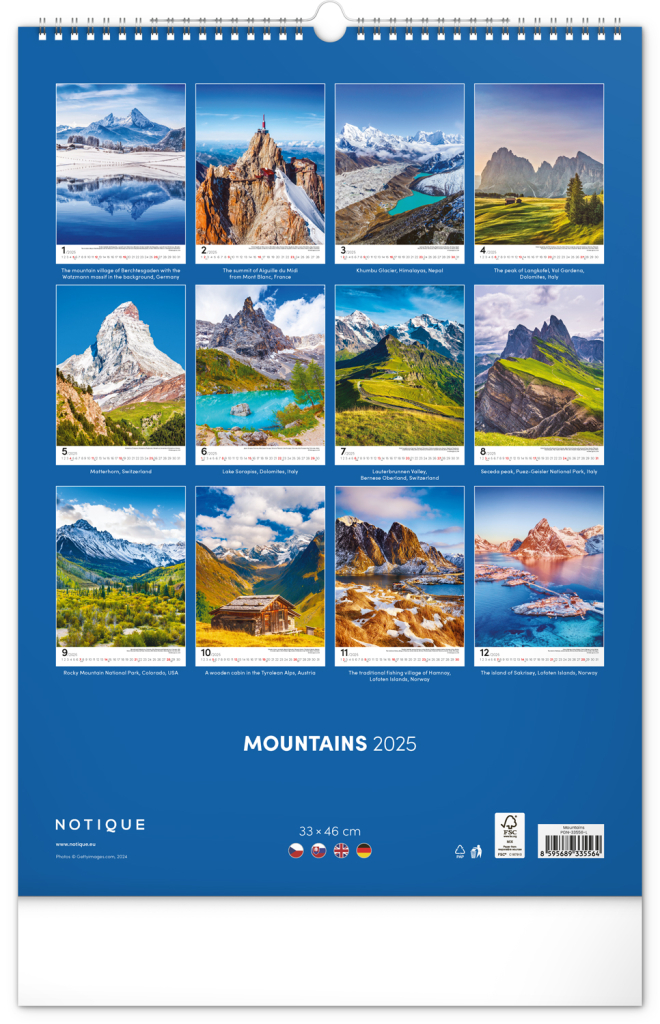 NOTIQUE Nástěnný kalendář Hory 2025, 33 x 46 cm