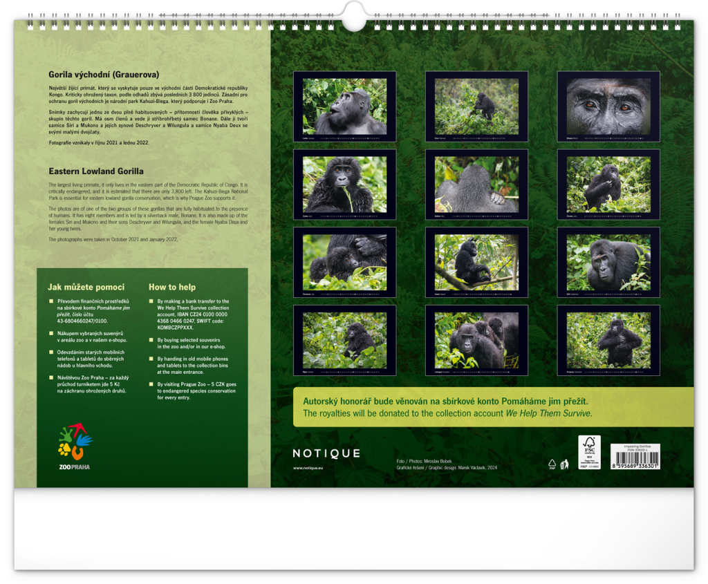 NOTIQUE Nástěnný kalendář Impozantní gorily 2025, 48 x 33 cm