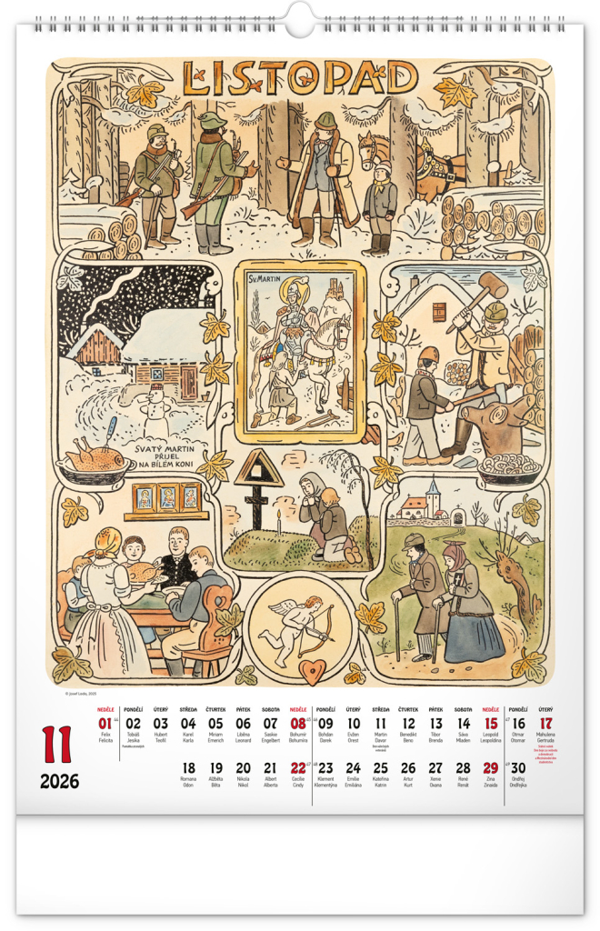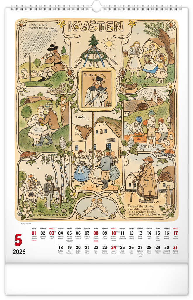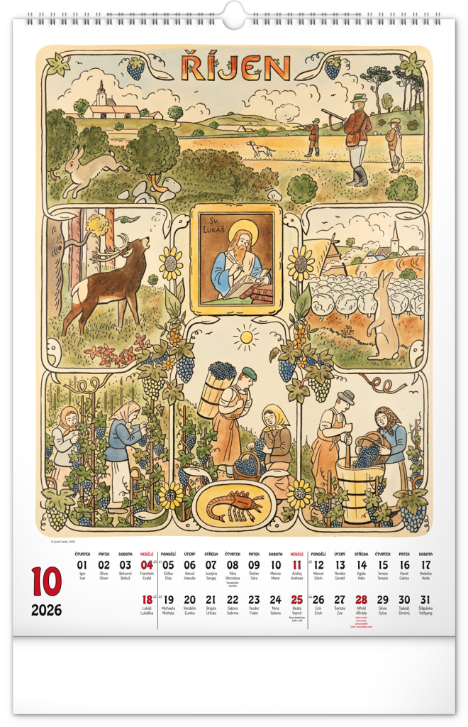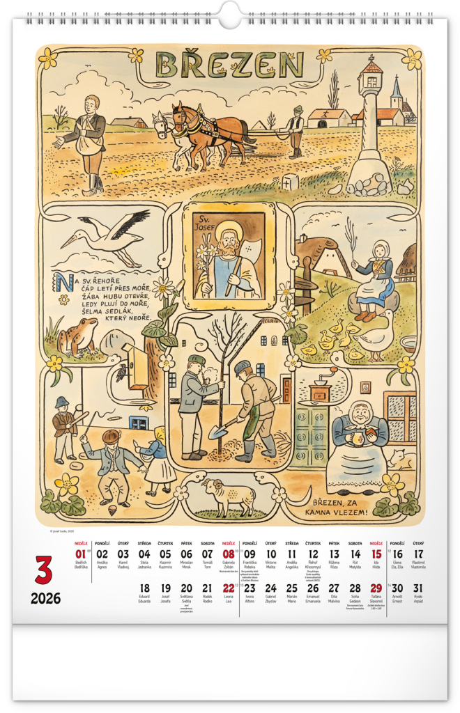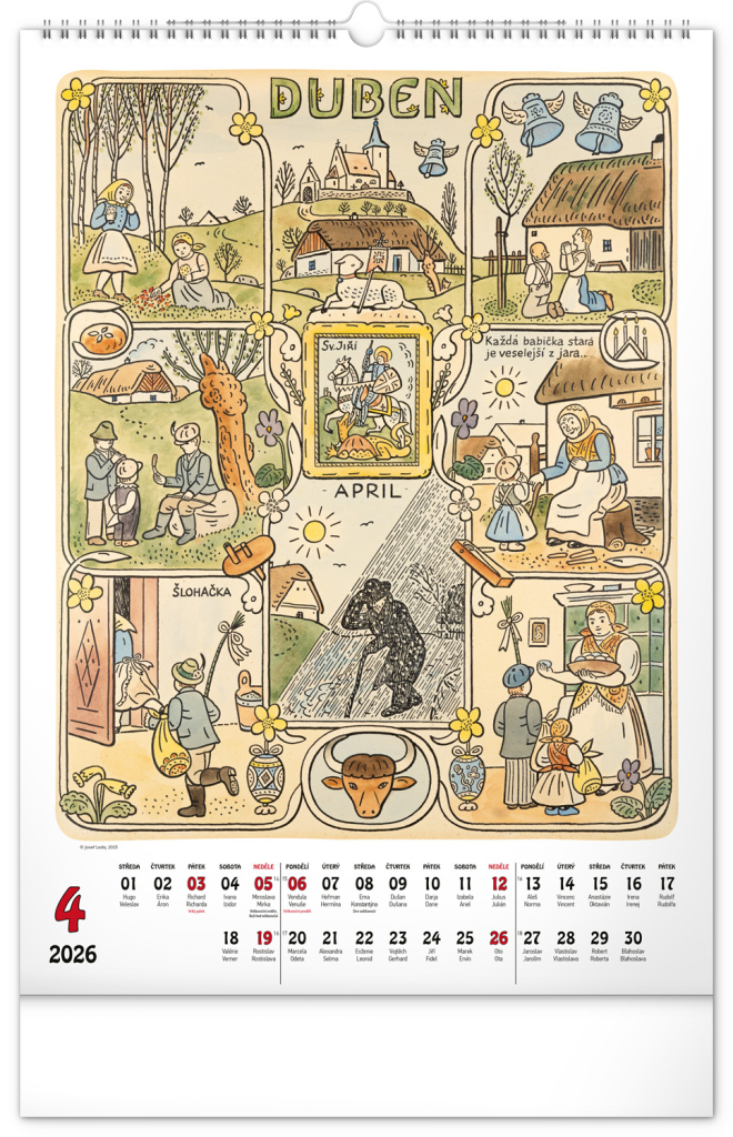 Nástěnný kalendář s ilustracemi Josefa Lady a pohádkovými motivy je vyhotoven v oblíbeném velkém formátu, který osvěží každý interiér. V kalendáři je rovnocenně zahrnuta čeština a slovenština, ilustrace doplňuje kalendárium s českými a slovenskými jmeninami, svátky, památnými dny a měsíčními fázemi. Pro každý den je prostor na poznámky, víkend je barevně odlišen od pracovních dní.