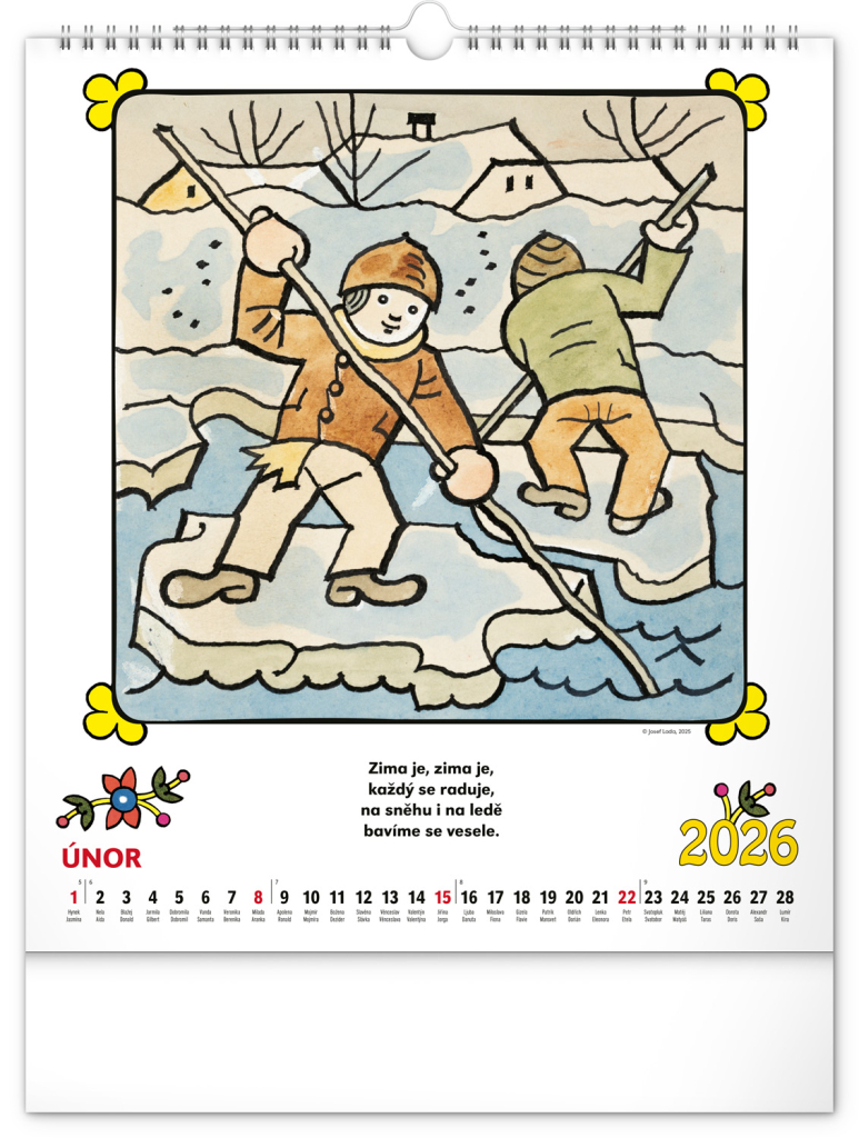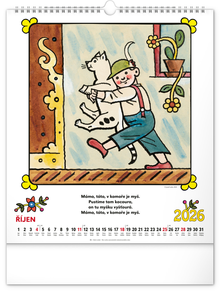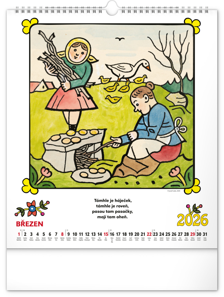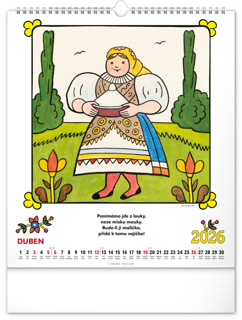 Nejznámější lidová říkadla pro děti doplňují malebné ilustrace Josefa Lady ve větším formátu nástěnného kalendáře.