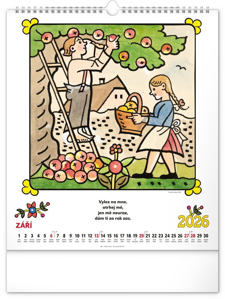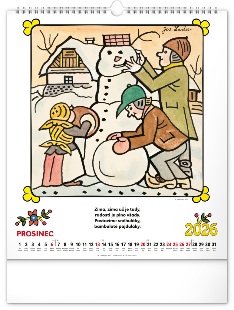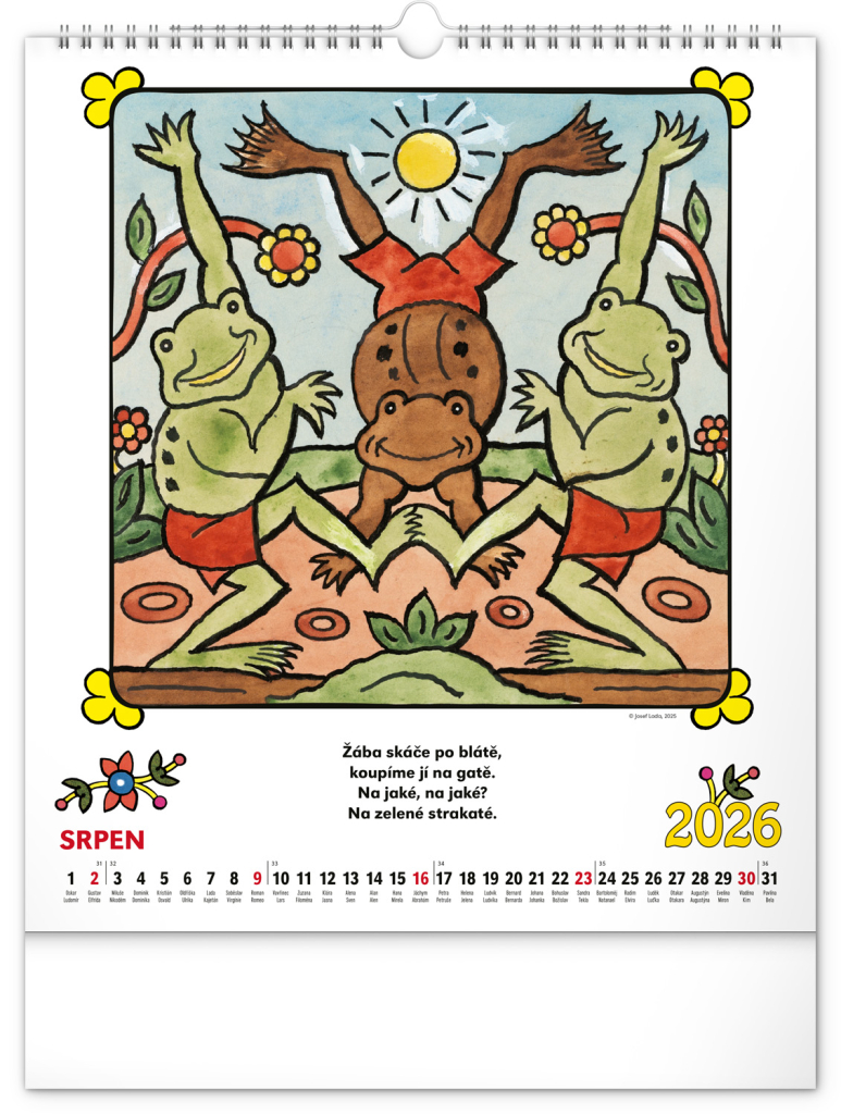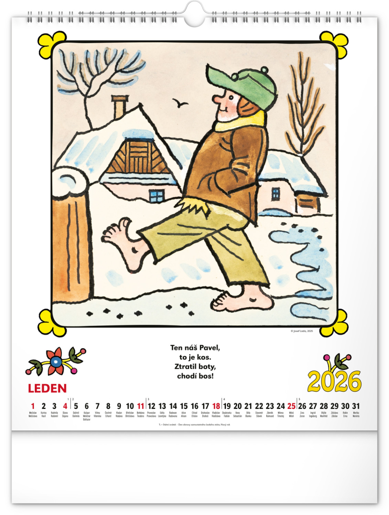 Nejznámější lidová říkadla pro děti doplňují malebné ilustrace Josefa Lady ve větším formátu nástěnného kalendáře.