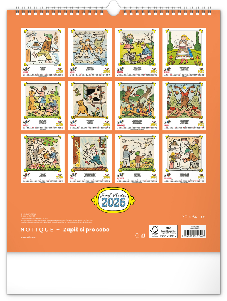 NOTIQUE Nástěnný kalendář Josef Lada – Říkadla 2026, 30 x 34 cm