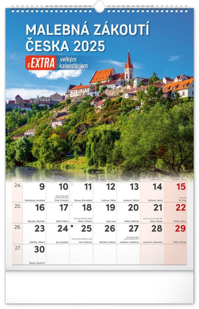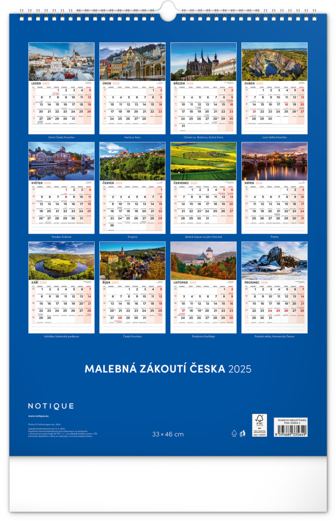 NOTIQUE Nástěnný kalendář Malebná zákoutí Česka s extra velkým kalendáriem 2025, 33 x 46 cm