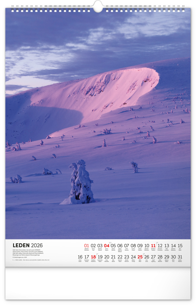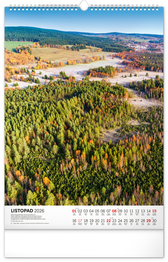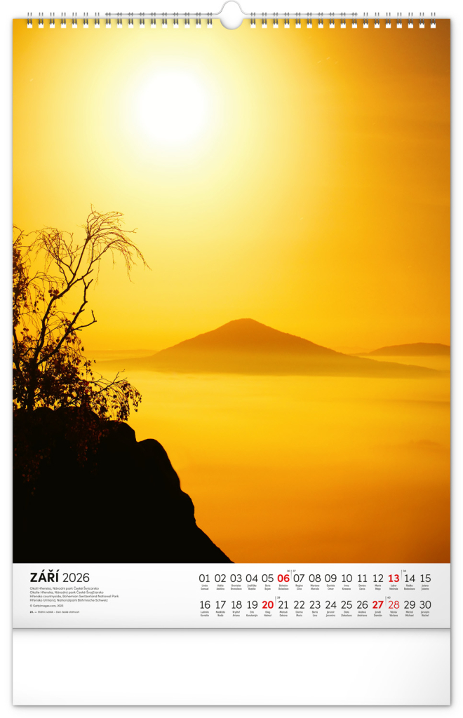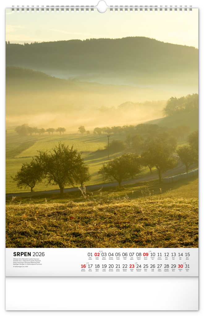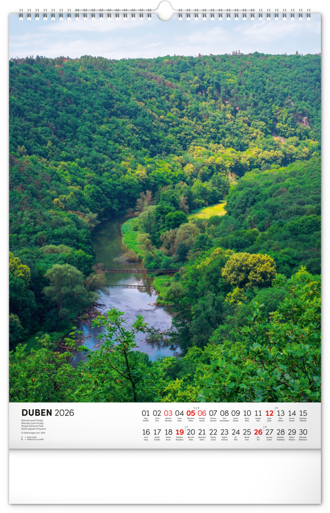 Objevujte krásu českých a moravských národních parků během celého roku. Nástěnný kalendář obsahuje dechberoucí fotografie přírody v oblíbeném výškovém formátu. U fotografií najdete popisky ve čtyřech jazycích a doplňuje je české kalendárium se jmény a svátky.