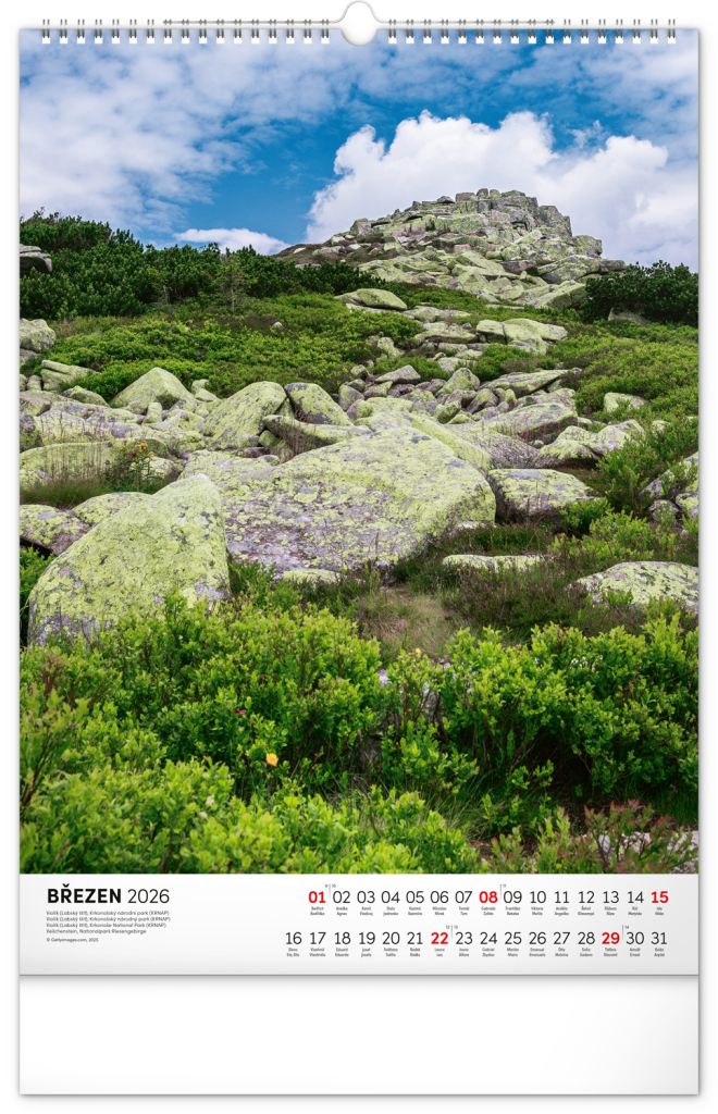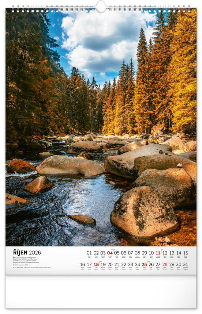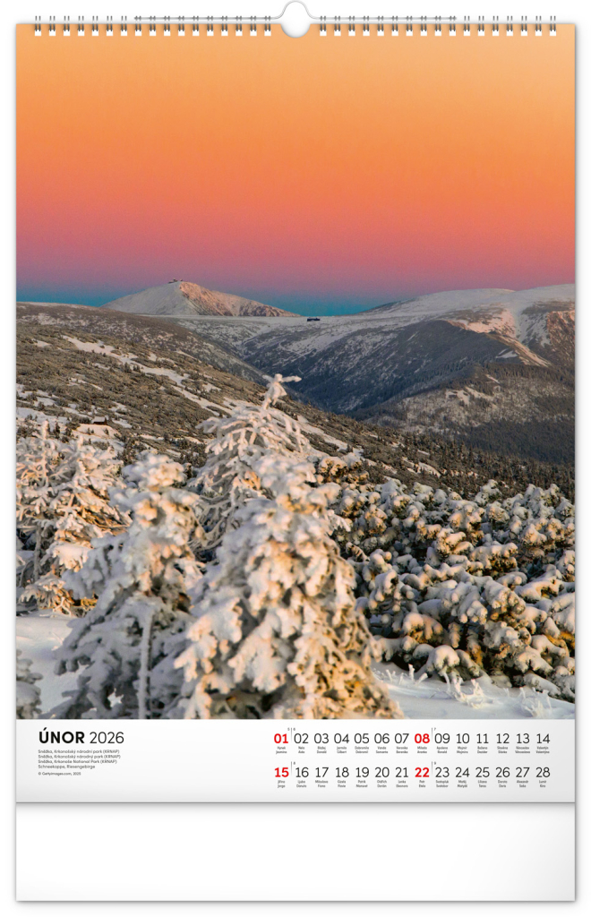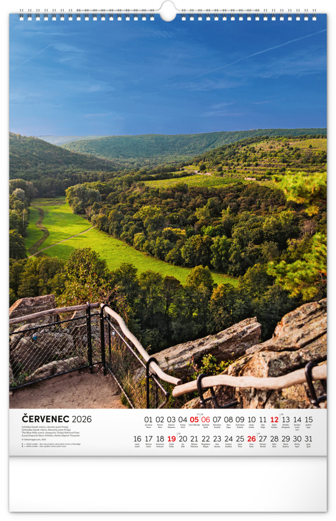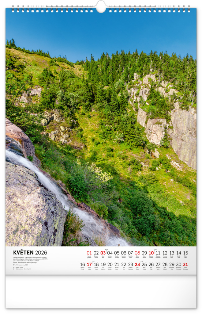 Objevujte krásu českých a moravských národních parků během celého roku. Nástěnný kalendář obsahuje dechberoucí fotografie přírody v oblíbeném výškovém formátu. U fotografií najdete popisky ve čtyřech jazycích a doplňuje je české kalendárium se jmény a svátky.
