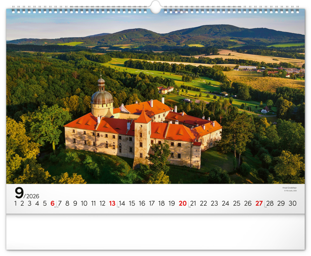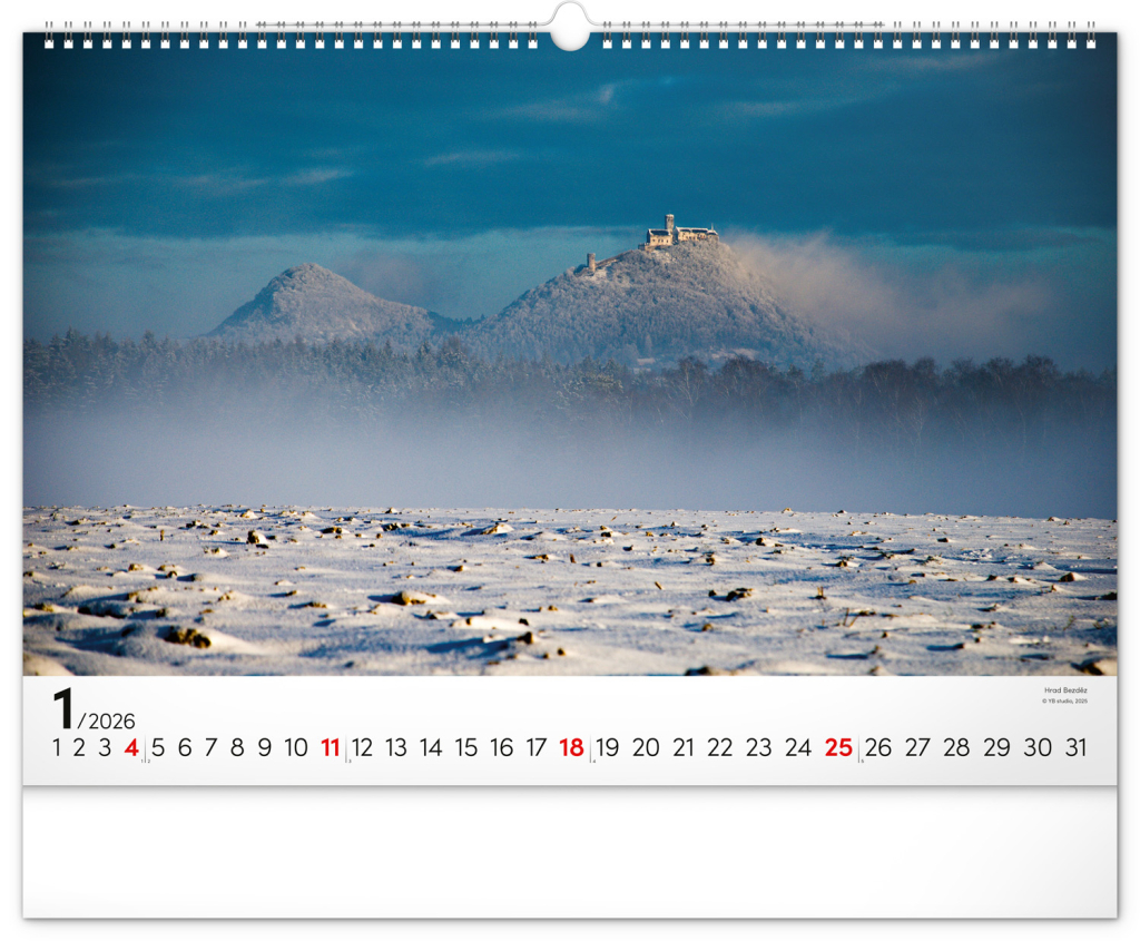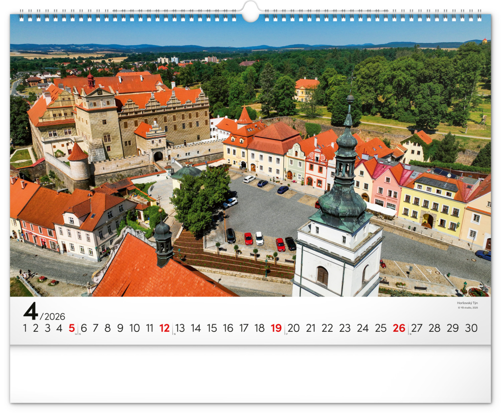 Velkoformátový kalendář obsahuje panoramatické fotografie krás a památek České republiky, které budete chtít navštívit. Vydejte se s námi na Grabštejn, Fulnek, Konopiště i do Jindřichova Hradce. Kalendář zahrnuje jednoduché kalendárium a vznikl ve spolupráci s YB studiem, které se specializuje na focení měst a krajiny.
