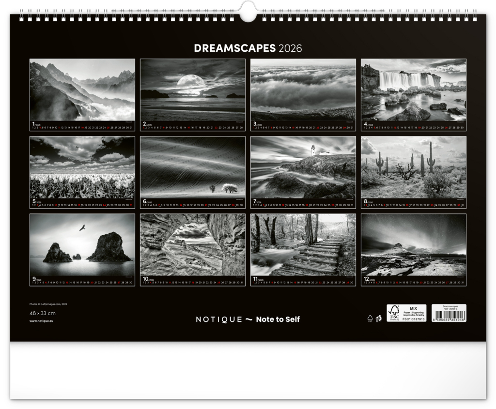 NOTIQUE Nástěnný kalendář Snová krajina 2026, 48 x 33 cm