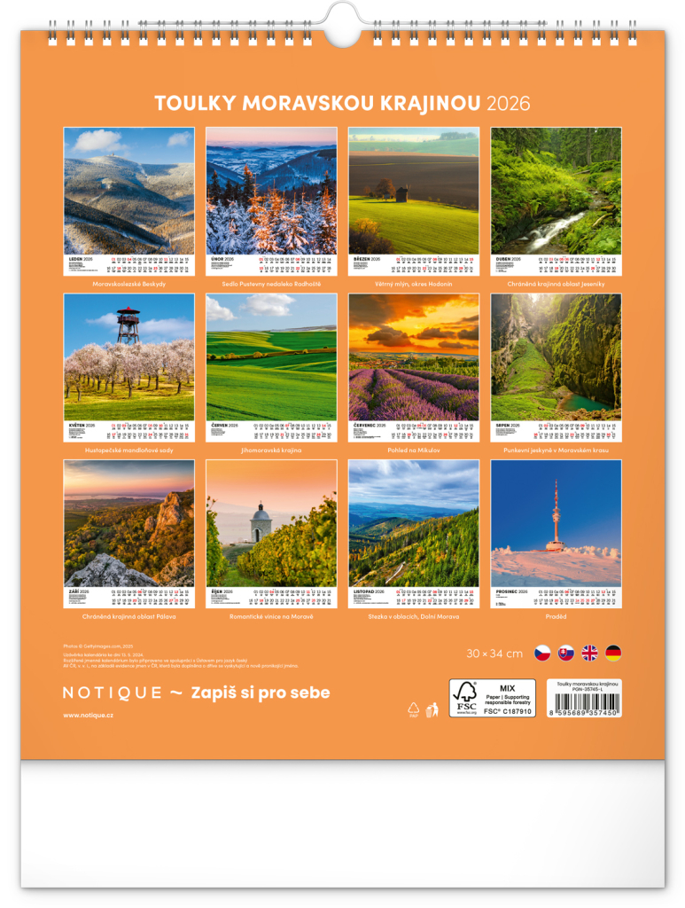 NOTIQUE Nástěnný kalendář Toulky moravskou krajinou 2026, 30 x 34 cm