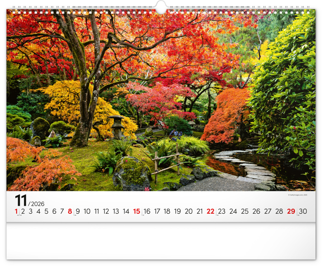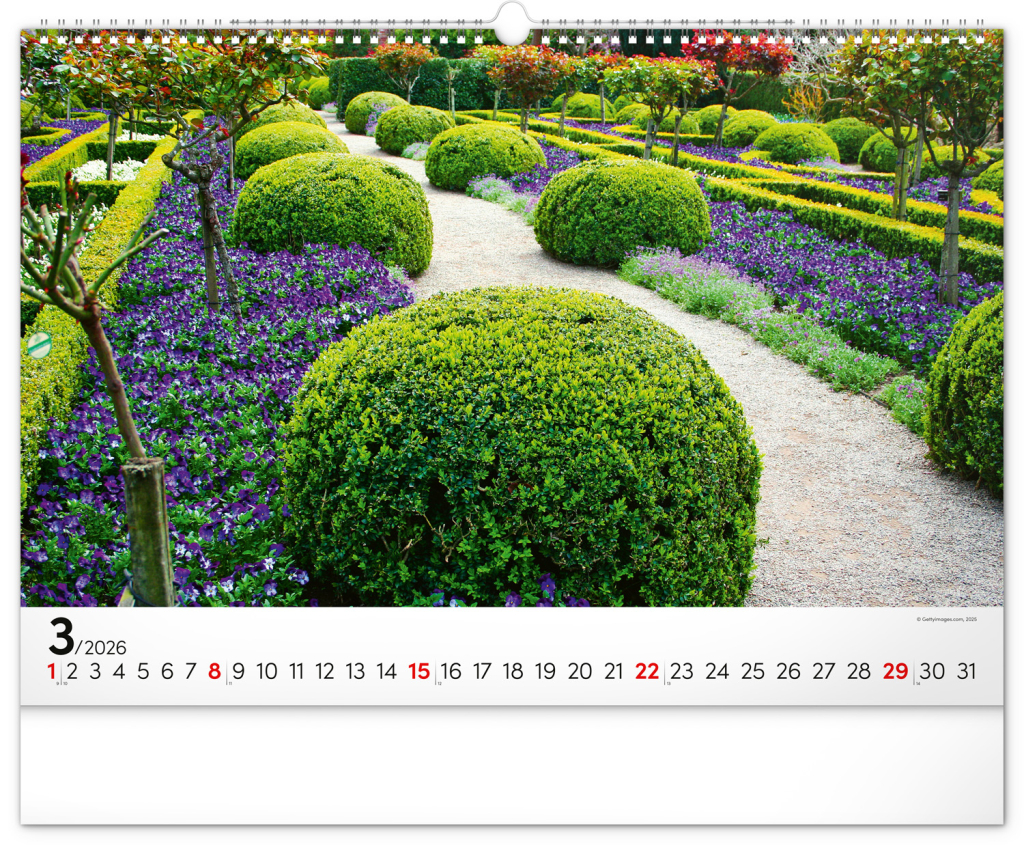 NOTIQUE Nástěnný kalendář Zahrady 2026, 48 x 33 cm