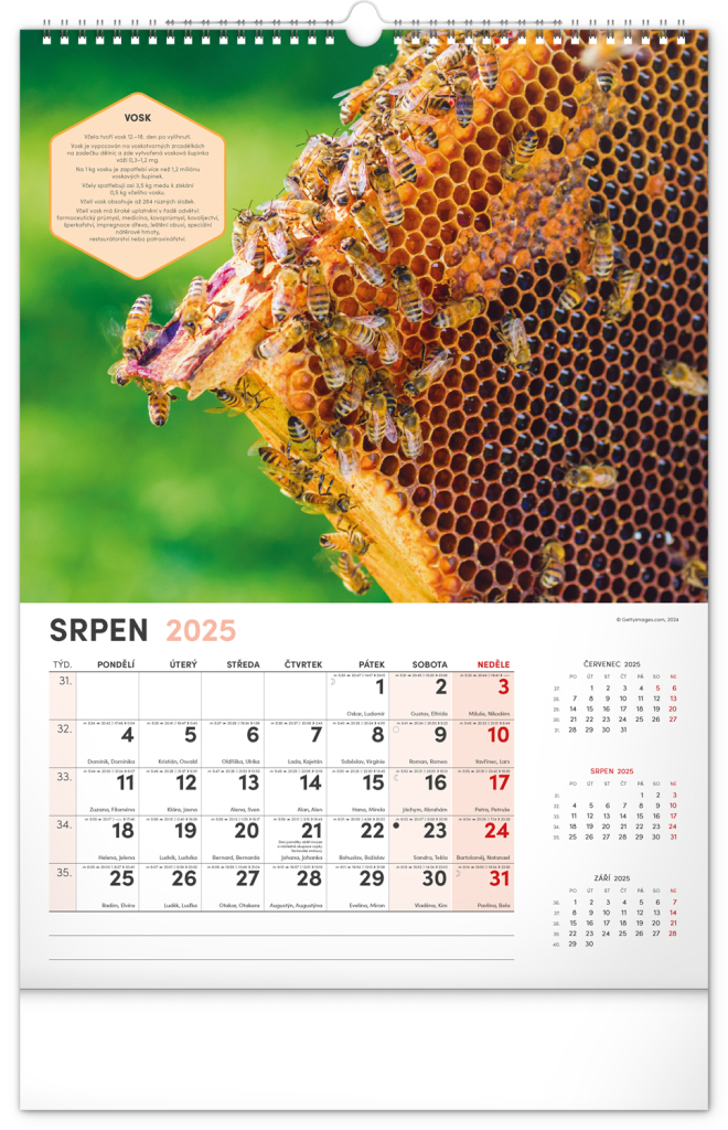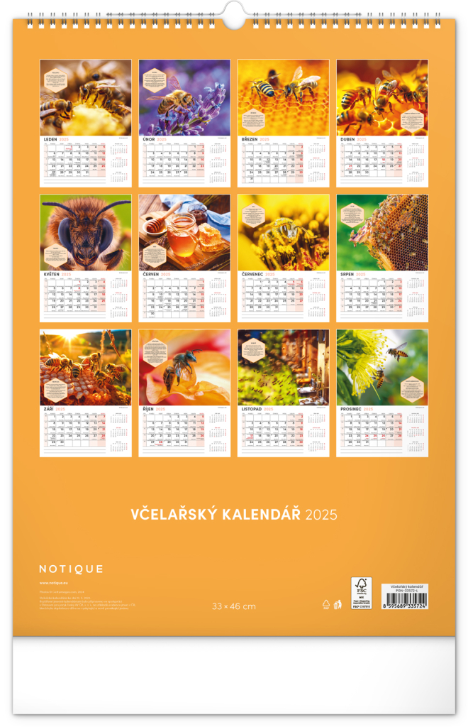 NOTIQUE Nástěnný Včelařský kalendář 2025, 33 x 46 cm