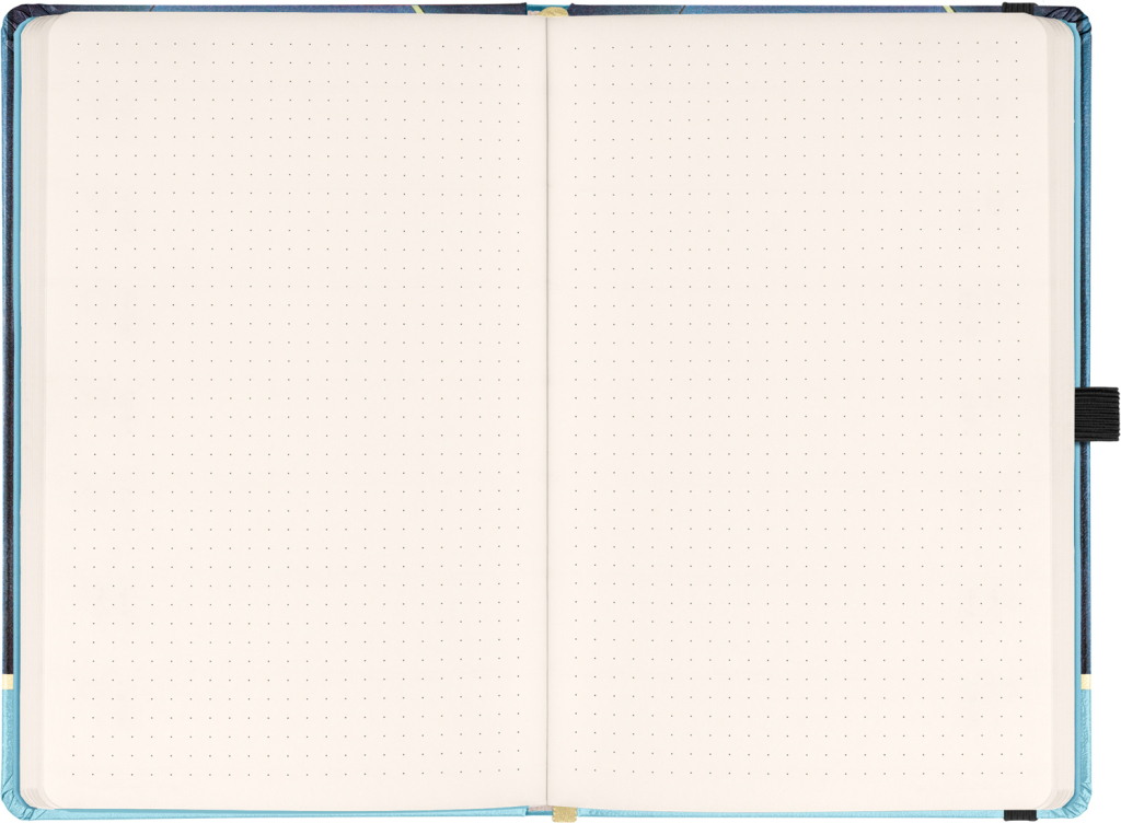 Notes v pevných deskách s motivem díla Alfonse Muchy, s uzavíráním na gumičku, kapsou na drobnosti a poutkem na tužku. Vevnitř najdete 172 tečkovaných stran na žlutém papíře pro zapsání všech vašich nápadů.