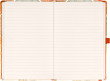 Kvalitní linkovaný notes v pevných deskách s uzavíráním na gumičku, poutkem na tužku a vnitřní kapsou na drobnosti. Uvnitř najdete 172 tečkovaných stran na žlutém papíře pro zapsání všech vašich nápadů. Linkovaný zápisník můžete použít jako deník, psát do něj hluboké myšlenky nebo pracovní poznámky.