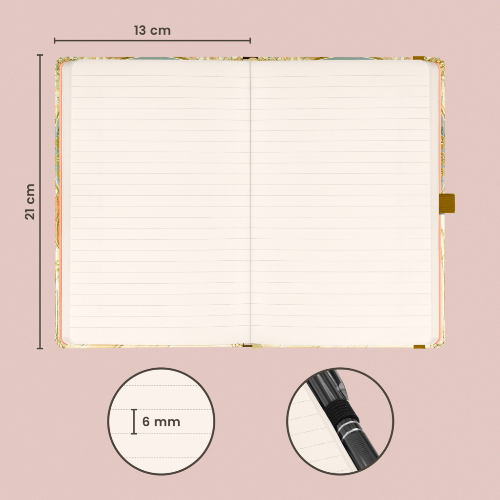 Kvalitní linkovaný notes v pevných deskách s uzavíráním na gumičku, poutkem na tužku a vnitřní kapsou na drobnosti. Uvnitř najdete 172 tečkovaných stran na žlutém papíře pro zapsání všech vašich nápadů. Linkovaný zápisník můžete použít jako deník, psát do něj hluboké myšlenky nebo pracovní poznámky.