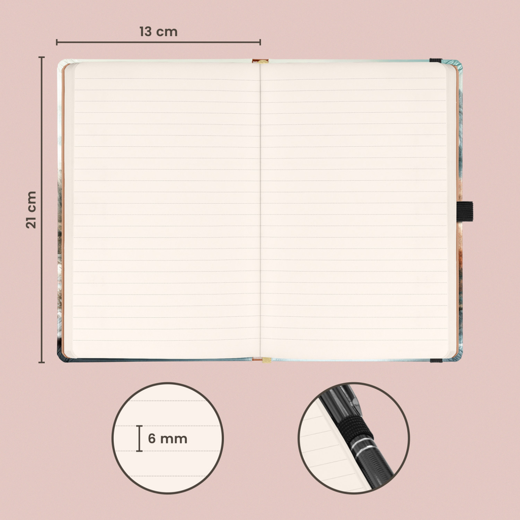 Kvalitní linkovaný notes v pevných deskách s uzavíráním na gumičku, poutkem na tužku a vnitřní kapsou na drobnosti. Uvnitř najdete 172 tečkovaných stran na žlutém papíře pro zapsání všech vašich nápadů. Linkovaný zápisník můžete použít jako deník, psát do něj hluboké myšlenky nebo pracovní poznámky.
