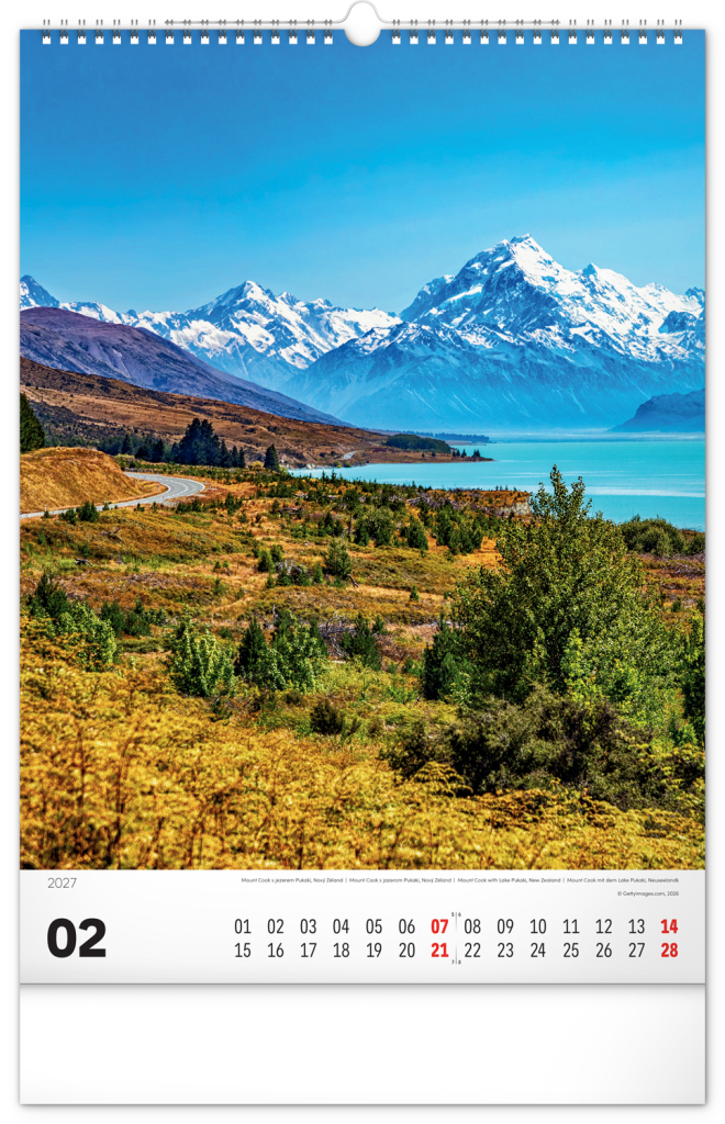 Nástěnný kalendář v atraktivním výškovém formátu obsahuje fotografie majestátních hor z Nového Zélandu, Islandu, Švýcarska nebo Kanady. Fotografie jsou doplněny jednoduchým kalendáriem.| EAN | 8595689363758 |